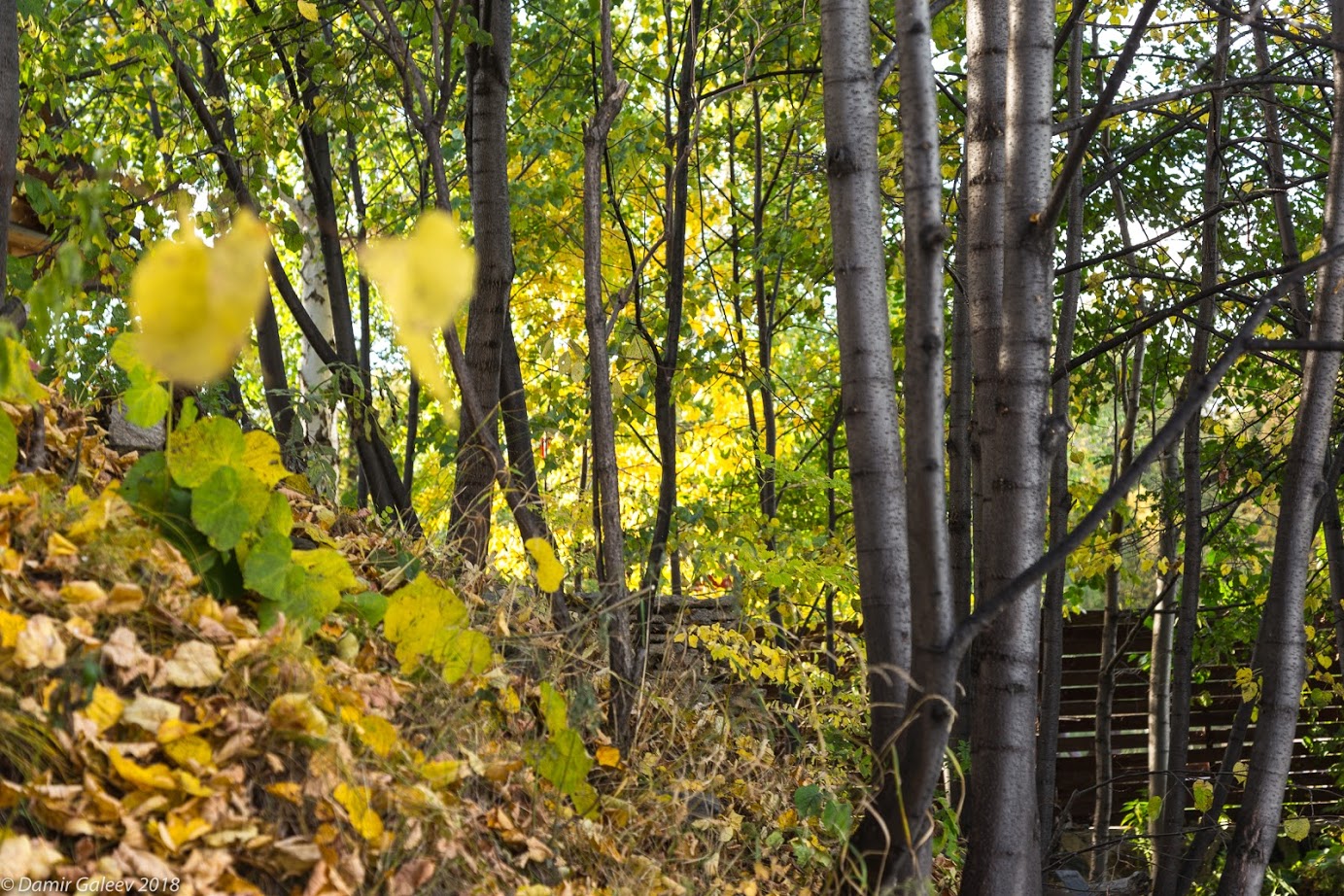 Осень — в городе и за городом. Мусор в лесу.